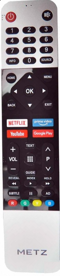 Original black remote control for METZ NETFLIX, YOUTUBE, PRIME VIDEO, GOOGLE PLAY. IR remote control without microphone. For example for 50MUC5000, 55MUC5000, 539C268908-W070, N030107-000670-001, 32MTC6000Z, 42MTC6000Z, 24MTC6000Z Read more ...