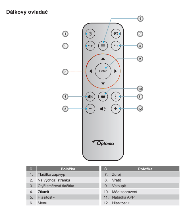 Original remote control for Optoma projectors. BR-3071N, BT16063, 45.7DE01G002, 45.77H01G021, 45.77H01G011, ZH507+