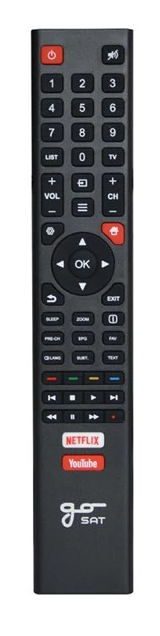 Remote control for GoSAT GS3210 TV. It can also control the basic functions of GoSAT Smart TVs. : 2x AAA batteries