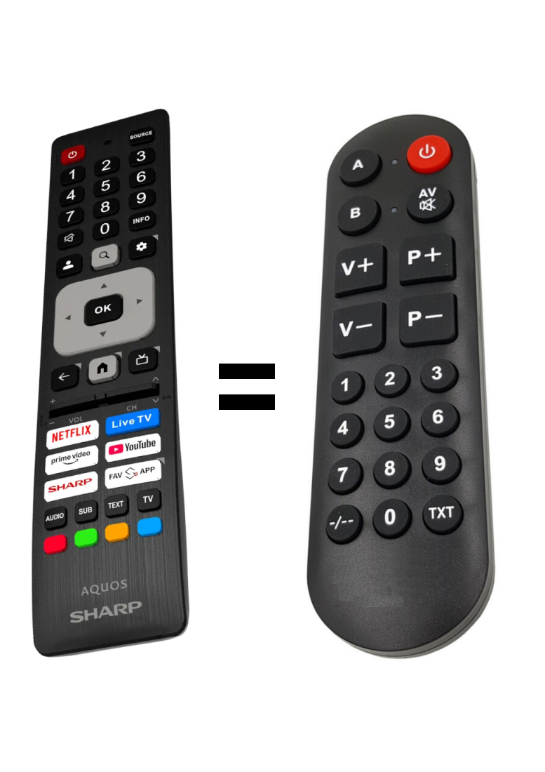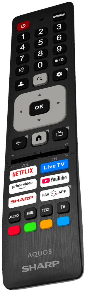 ONLY BASIC FUNCTIONS. Replacement remote control for sharp TVs with NETFLIX, LIVE TV. PRIME VIDEO, YOUTUBE, SHARP, FAV APP. For example for models 40HF2265E, 32HF2265E