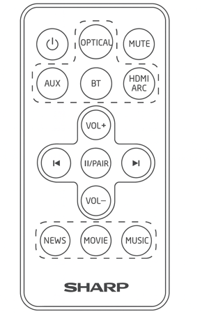 Sharp HT-SB107, HT-SB110, HT-SB140MT, HT-SB95, HT-SBW110, HT-SBW160, HT-SBW182, HT-SB140 replacement remote control